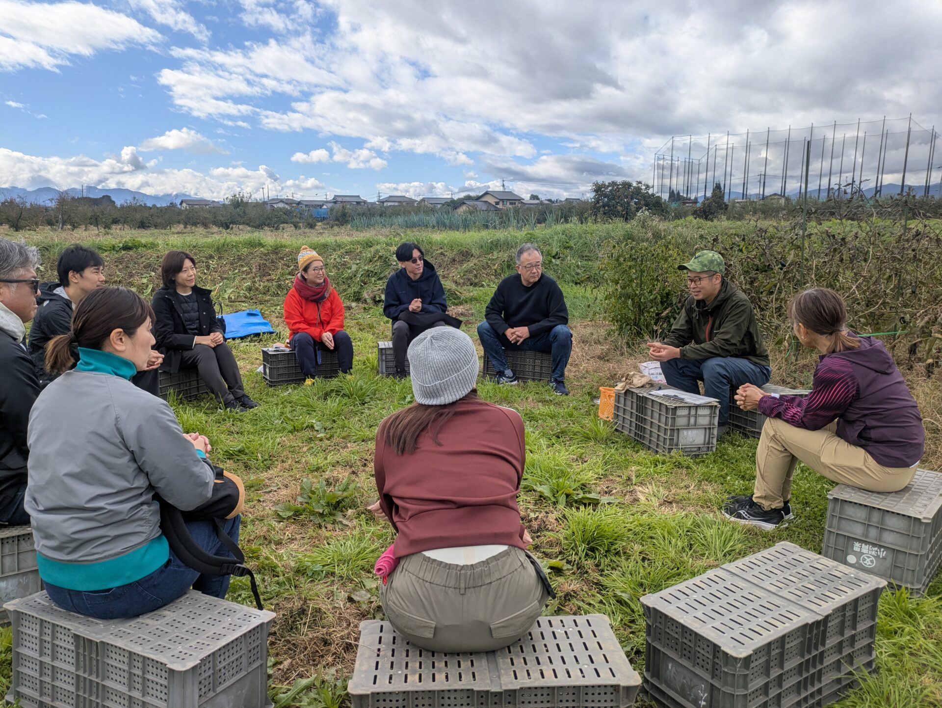 今回のホストは、小布施町で微生物農法に取り組まれている工藤さん。朗らかな表情の奥に、確かな芯の通った語り口。そんな工藤さんの言葉に導かれ、まずは畑の土に触れるところから始まりました。