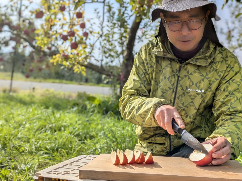 小布施から届いたリンゴを食べながら、リトリートは終わっても、この感覚は日常に持ち帰れることを改めて感じています。忙しい毎日の中でふと立ち止まり、土や風や木々を思い出すだけで、心の中心に立ち返り、自分自身と向き合うことができる