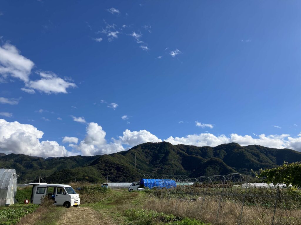 畑へ足を踏み入れた瞬間、ふっと身体が軽くなる。有機肥料独特の、酸っぱいような匂い、土の匂い、陽射しのあたたかさ、遠くに見える山並み。